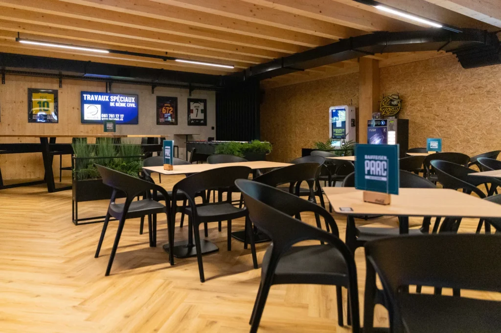Au cœur du Raiffeisen Parc, notre restaurant vous accueille au 1er étage dans une ambiance à la fois moderne, chaleureuse et conviviale.
