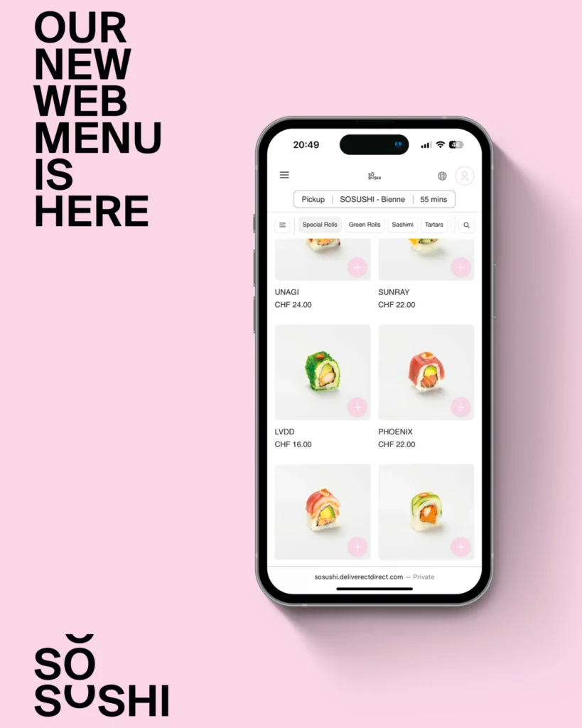 Découvrez SoSushi au Raiffeisen Parc : des sushis frais, préparés chaque jour avec soin. Commandez facilement en pickup, en livraison à domicile ou profitez de notre service de catering pour vos événements.